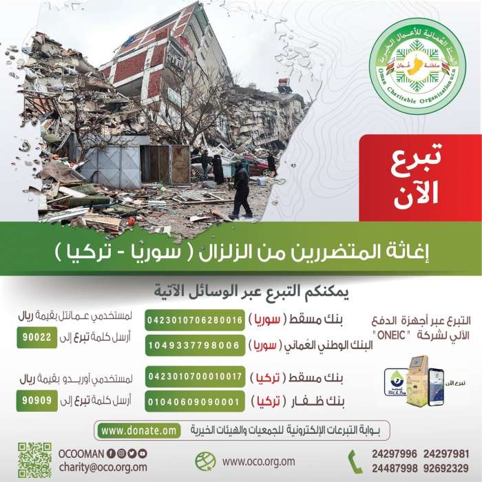 The authority also announced account numbers designated for donations through Bank Muscat, National Bank of Oman and Bank Dhofar in the announcement.